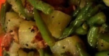 Ingredients: °6 potatoes°flat beans°1 punnet of bacon bits°Olive oil°1 clove of garlic°Salt pepper°Parsley Instructions: Enjoy!