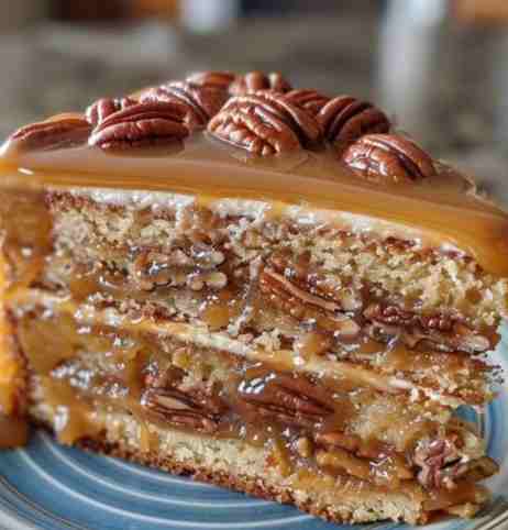A Southern Pecan Caramel Cake is a rich dessert that captures the delicious flavors of the American South. This cake has layers of soft, buttery cake with a delicious nutty flavor from toasted pecans. Each layer is covered with a delicious caramel frosting, which adds a perfect mix of sweetness and texture. The caramel, which is usually made at home, gives the cake a rich and creamy touch, making it even more delicious. Great for special events or as a comforting dessert, the Southern Pecan Caramel Cake represents Southern hospitality and cooking customs, providing a delicious experience with each mouthful.