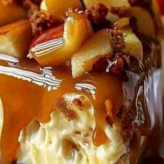 – Once the cheesecake is fully set and chilled, top it with the caramelized apple mixture.