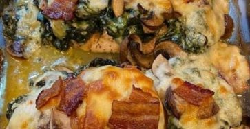 Smothered Chicken with Creamed Spinach Bacon And Mushrooms