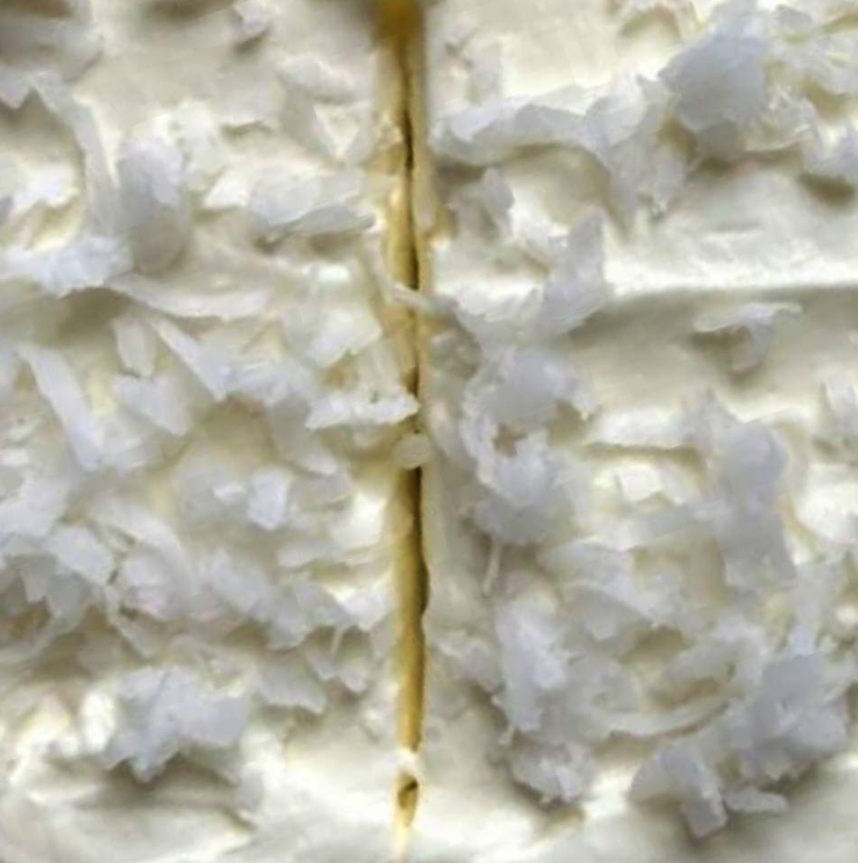 While warm, poke shallow holes in the top. Shake the can of coconut milk and pour it evenly over the cake. Let cool and absorb.