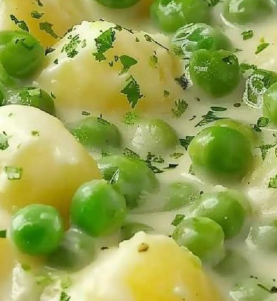 Serve in bowls and enjoy this comforting potatoes and peas meal!