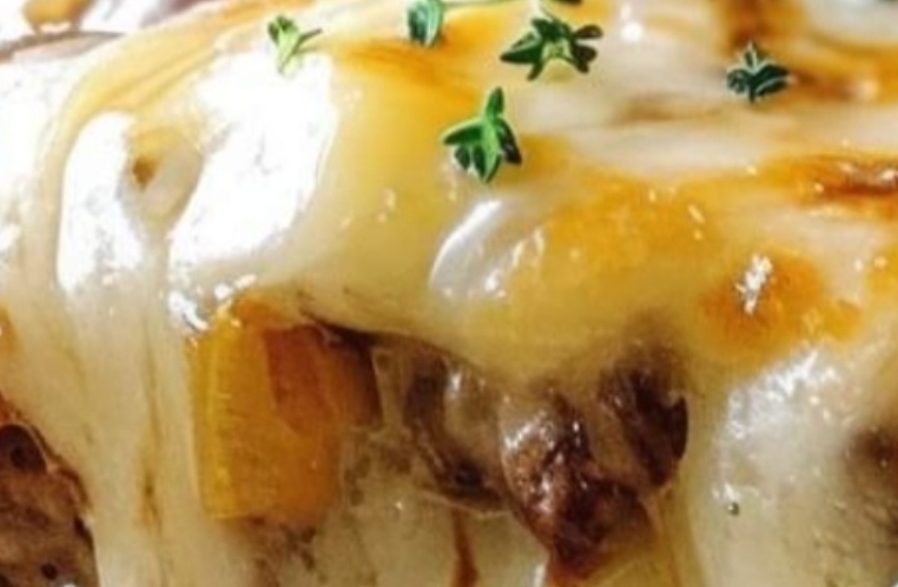 Melt butter in a skillet over medium heat. Add the thinly sliced onions and cook them slowly, stirring occasionally, until they become caramelized, which takes about 20-25 minutes. Once caramelized, pour in the beef broth and continue cooking until most of the liquid is absorbed.