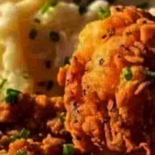 Marinate the Chicken:In a large bowl, whisk together buttermilk, salt, pepper, and paprika.Add the chicken pieces, making sure they are fully submerged.Cover and refrigerate for at least 1 hour, or overnight for best results.Prepare the Mashed Potatoes:Boil the potatoes in salted water until tender, about 15-20 minutes.Drain and return to the pot.Add milk and butter, and mash until smooth and creamy.Season with salt and pepper to taste.Keep warm.Fry the Chicken:Heat oil in a deep fryer or large pot to 350°F (175°C).Mix flour with garlic powder in a shallow dish.Remove chicken from buttermilk, allowing excess to drip off.Dredge chicken in the flour mixture, coating thoroughly.Fry in batches until golden brown and cooked through, about 15 minutes per batch.Drain on paper towels.Assemble and Serve:Serve the fried chicken hot with the mashed potatoes on the side.Sprinkle chopped chives over the mashed potatoes for garnish.Serving Size: 4 servingsPrep Time: 30 minutes (plus marinating)Cook Time: 45 minutesCalories: Approx. 900 per serving