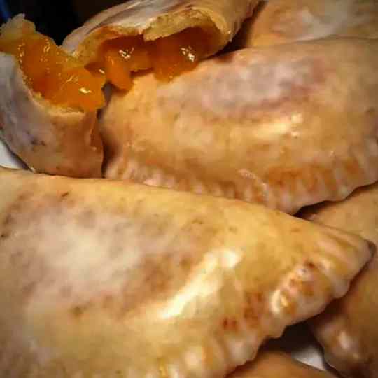 Pour oil to a depth of 1/2 inch into a heavy skillet, or use deep fryer. Fry pies in hot oil (370°) over medium-high heat until golden, turning once. Don’t rush it because you want to make sure the biscuit is cooked completely through.