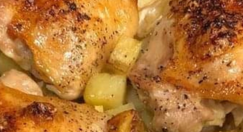 I’ve been making this recipe for so many years, I can’t remember where I got it from. It’s really quick to throw together. After fixing it several times, my husband ‘discovered’ that you were supposed to spread the garlic on the chicken. It’s one of his favorites now. This recipe is very easy to adjust up or down. Just make sure your pan is big enough if adjusting up. I usually add more potatoes, since we like them. Serve with a mixed greens salad.