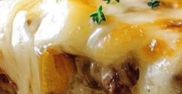 Crockpot French OnionMeatloaf with MeltedSwiss Cheese