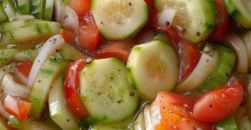 Marinated Cucumber, Tomato, and Onion Salad is a refreshing summer side dish that comes together in less than 5 minutes…