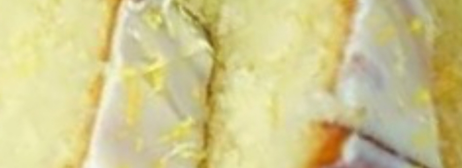 Cut the lemon cake and serve it with the sweet condensed milk topping.