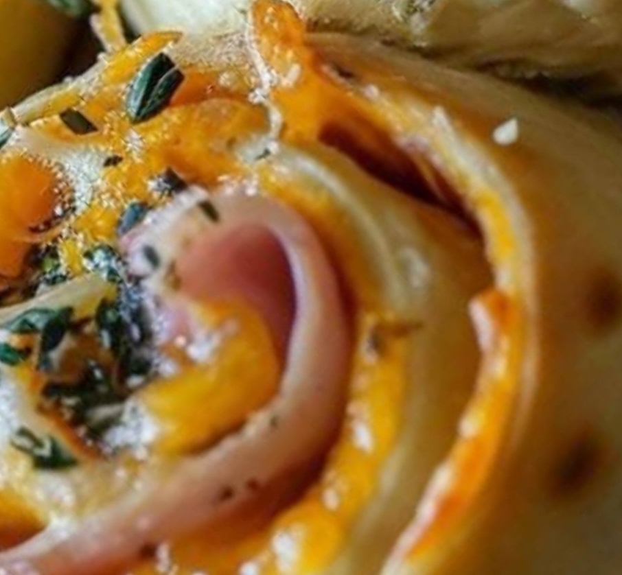 Preheat your oven to 375°F (190°C) and line a baking sheet with parchment paper.On a floured surface, roll out the pizza dough into a 1/4-inch-thick rectangle.Lay the ham slices over the dough, leaving a small border around the edges.Evenly spread the shredded cheese over the ham.Roll the dough tightly from a long edge, as you would a jelly roll.Cut the log into 1-inch sections and place them on the baking sheet.Bake for 18-20 minutes until golden brown and the cheese is bubbly.Let cool slightly before serving.Variations & Tips:Add red pepper flakes or hot sauce to the cheese for a spicy kick.Experiment with different cheeses like Gruyere, Swiss, or smoked provolone.For a vegetarian version, use sautéed spinach and mushrooms (drained of moisture) instead of ham.Brush the tops with melted butter and garlic powder before baking for extra indulgence.Let the dough rest at room temperature for easier handling.Feel free to customize these roll-ups with your favorite ingredients, keeping in mind not to overstuff them. Enjoy the process and the delicious result of this simple, yet delightful dish!