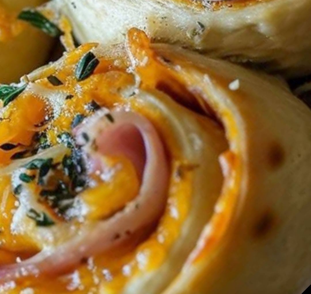 Preheat your oven to 375°F (190°C) and line a baking sheet with parchment paper.On a floured surface, roll out the pizza dough into a 1/4-inch-thick rectangle.Lay the ham slices over the dough, leaving a small border around the edges.Evenly spread the shredded cheese over the ham.Roll the dough tightly from a long edge, as you would a jelly roll.Cut the log into 1-inch sections and place them on the baking sheet.Bake for 18-20 minutes until golden brown and the cheese is bubbly.Let cool slightly before serving.Variations & Tips:Add red pepper flakes or hot sauce to the cheese for a spicy kick.Experiment with different cheeses like Gruyere, Swiss, or smoked provolone.For a vegetarian version, use sautéed spinach and mushrooms (drained of moisture) instead of ham.Brush the tops with melted butter and garlic powder before baking for extra indulgence.Let the dough rest at room temperature for easier handling.Feel free to customize these roll-ups with your favorite ingredients, keeping in mind not to overstuff them. Enjoy the process and the delicious result of this simple, yet delightful dish!