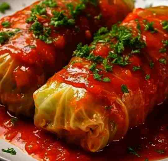 Place the cabbage rolls in a large skillet over medium heat and pour the remaining tomato sauce over them. Cover and boil. Reduce heat to low and simmer for about 40 minutes, skimming and draining frequently.