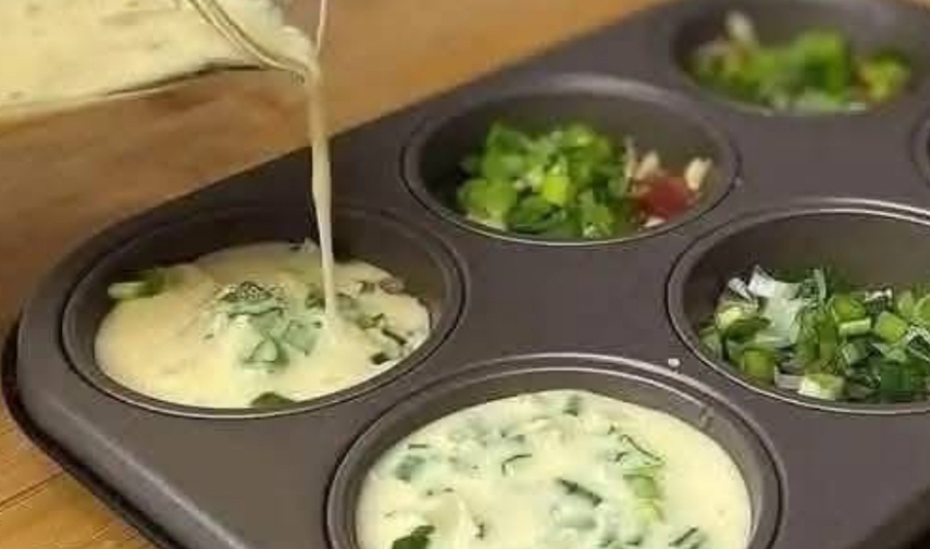 Preheat the oven to 350°F (175°C) and grease a muffin tin with non-stick spray or line it with paper muffin cups. This ensures that the omelet muffins don’t stick to the tin after baking.