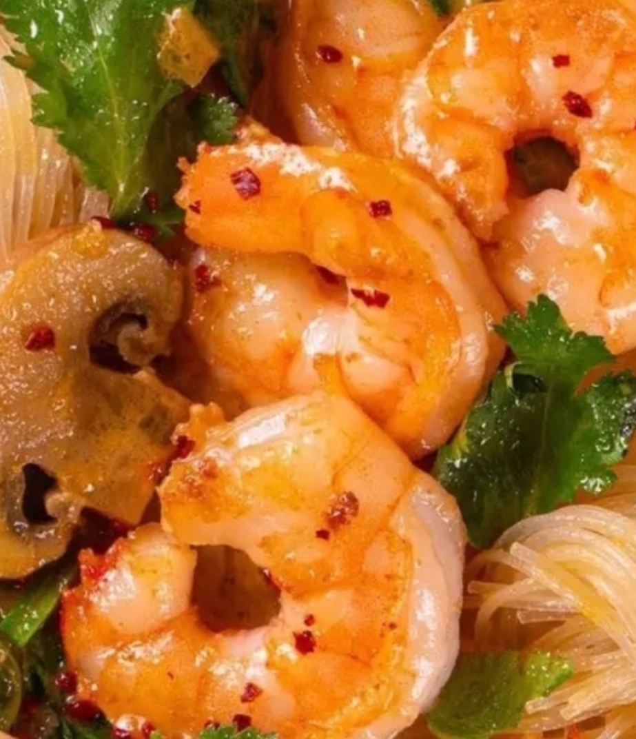 5️⃣ Assemble: Divide noodles into bowls. Ladle hot broth, shrimp, and veggies over them.